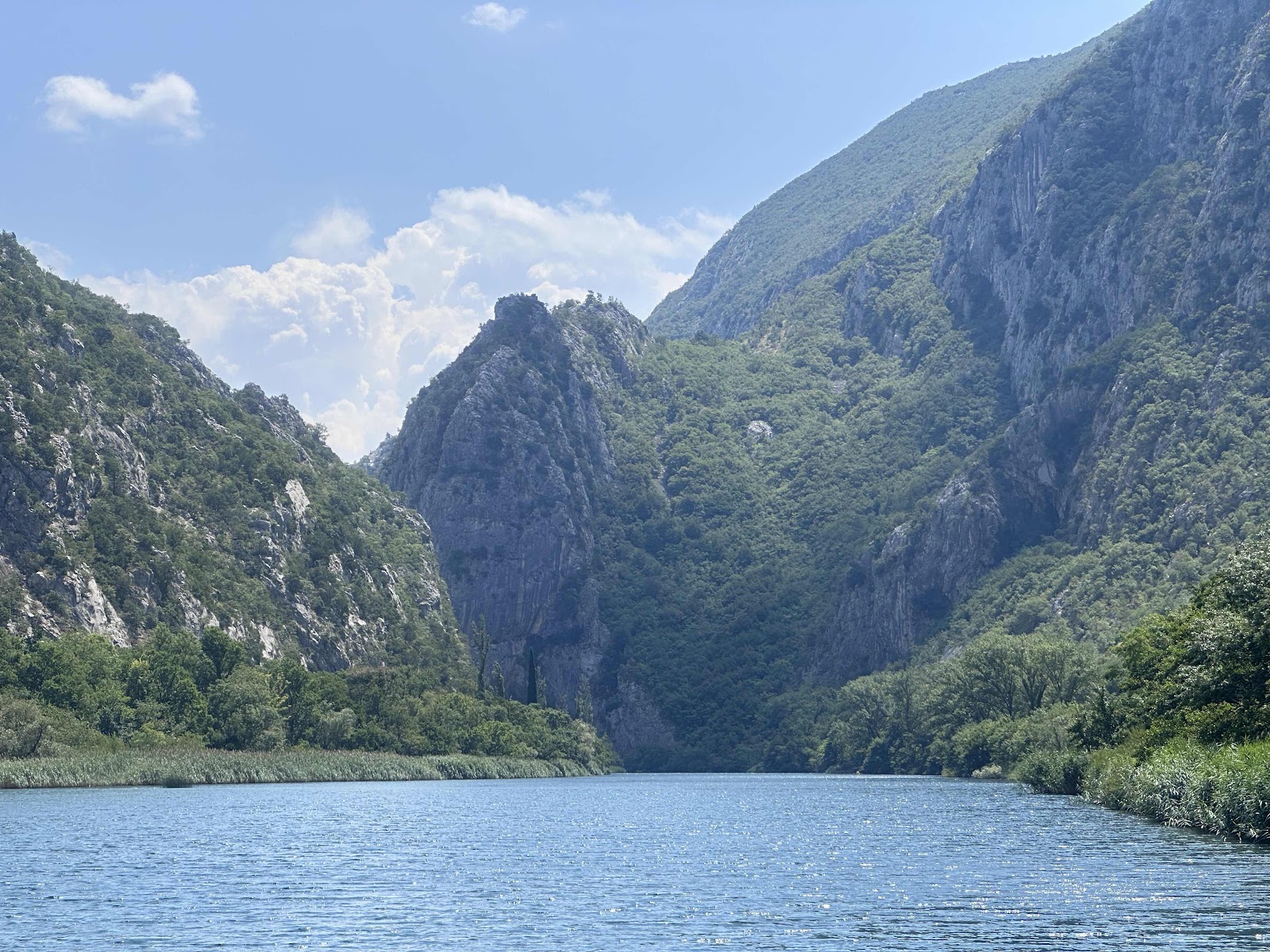 Vi hoppede ombord på en båd, der kunne sejle os lidt ind imellem kløfterne.