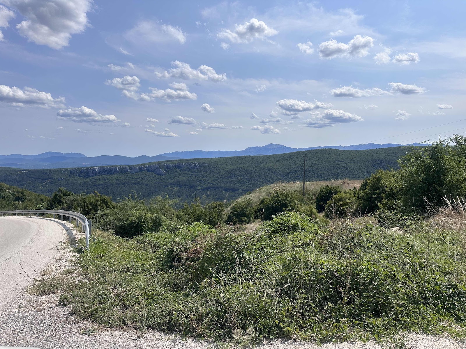 Til sidst hjemad. Adriaterhavet til venstre og bjerge på højre. Flot. Undervejs retur lykkedes det os at krydse grænsen til Bosnien-Herzegovina. Vejen slog lige et sving omkring og vi var der i ca. 5 sekunder. Puha, godt ingen så det for vi havde ikke vores pas med.