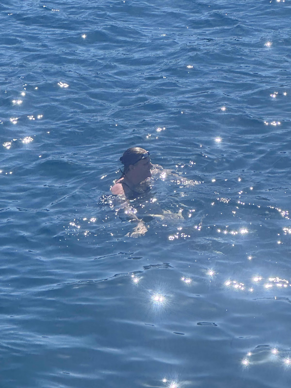 Efter frokosten endnu et badestop. Anja først af alle i vandet.